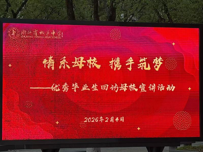 2026年2月4日,我重返阔别已久的桐庐中学,先前往高三教师办公室拜访班主任和各科任课老师,感念师恩的同时,了解母校本届高三的整体学情和备考进度。随后前往阶梯教室,完成宣传海报张贴、PPT调试、宣传资料和文创礼品摆放等场地布置工作。